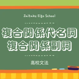 2024年9月27日 / 最終更新日時 : 2024年10月10日 在宅英語 学び直し英語【学び直し英語】高校文法 複合関係代名詞・複合関係副詞 高校で学ぶ複合関係代名詞・複合関係副詞を学び直しましょう! 複合関係代名詞とは? 複合関係代名詞とは、関係代名詞のwho・which・whatにeverが付いたもので、名詞節や副詞節を作る。複合関係代名詞にはwhoeve […]