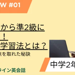 2025年4月26日 / 最終更新日時 : 2025年4月29日 在宅英語 準2級英検®3級から準2級に連続合格!中学2年生Nさんの学習法とは? Nさんの英検® 3級・準2級合格体験談 2024年度第2回英検®で見事3級に合格し、その後すぐに準2級にも合格した中学2年生のNさん。彼女がどのようにしてこの成果を達成したのか、レッスン内容や宿題、自宅学習のポイントを詳 […]