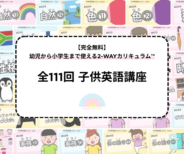 当講座は、ユニット(単元)ごとに学ぶ方法と、色(レベル)ごとに学ぶ2つの使い方が可能です。詳しくは、概要ページをご覧ください。1回平均2分18秒の動画と、無料の復習プリントを使って、今日から楽しく英語を始めてみましょう!