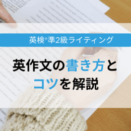 2024年9月6日 / 最終更新日時 : 2025年9月10日 在宅英語 準2級【英検®準2級ライティング】英作文の書き方とコツを解説 英検®準2級のライティング、英作文の書き方に自信がない…と悩んでいませんか?「何から書き始めればいいかわからない」「どうすれば高得点になるの?」といった疑問を抱えている方は多いでしょう。 この記事では、英検準2級ライティ […]
