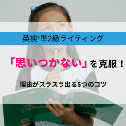 2024年9月7日 / 最終更新日時 : 2025年9月11日 在宅英語 準2級英検®準2級ライティングで「思いつかない」を克服!理由がスラスラ出る5つのコツ 英検®準2級ライティングで「思いつかない」ということをなくすためのコツと勉強方法をプロ講師が徹底解説!
